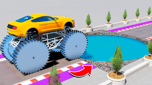 СМОЖЕТ ЛИ ГИГАНТСКИЙ ФОРД МУСТАНГ НА ПИЛАХ ПРОЕХАТЬ ОПАСНУЮ ЯМУ С ВОДОЙ ГТА 5 - ЭКСПЕРИМЕНТЫ GTA 5