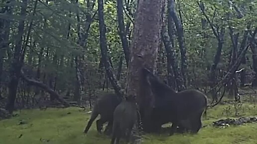 Танец диких кабанов у "чесального" дерева – видео из Сихотэ-Алинского заповедника Дальнего Востока
