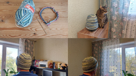 Двойная шапка спицами из носочной пряжи готова!Размер 57-58.