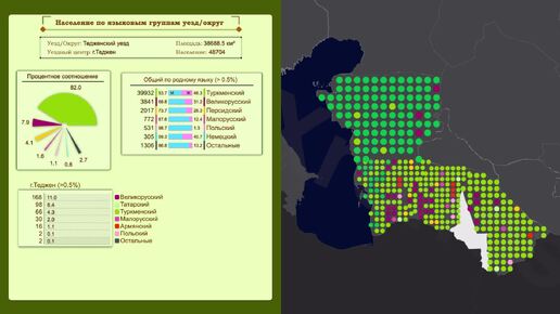 Закаспийская область на карте по переписи 1897г.