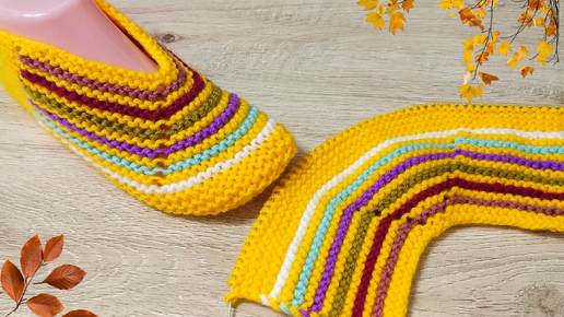Осенние следки 🍁 спицами из остатков пряжи 🧶 без шва на ПОДОШВЕ 😊