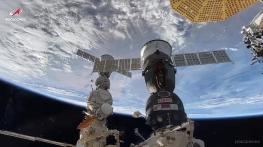 Кадры отстыковки «Союза» от МКС от космонавта - уроженца Мысков, Александра Гребенкина.