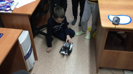 Рабочие моменты первого испытания робота, собранного из конструктора ЛЕГО.
