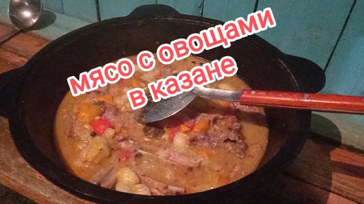 Мясо с овощами в казане.