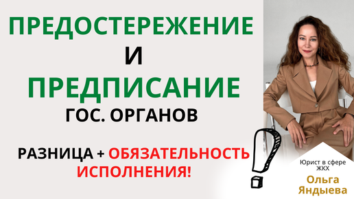 ПРЕДОСТЕРЕЖЕНИЕ и ПРЕДПИСАНИЕ гос. органов - разница + обязательность исполнения!