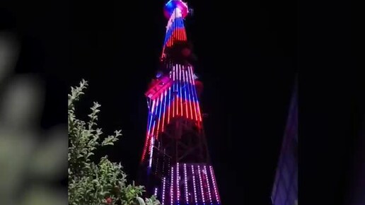 Телебашня в Симферополе сегодня окрашена в цвета российского триколора в честь Дня государственного флага и герба Республики Крым