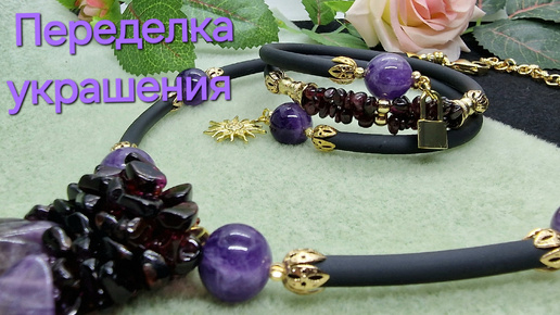 Переделка из Остатков бусин. Колье и Браслет с Аметистом и Гранатом.