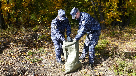 Сотрудники Росгвардии провели уборку на берегу реки Ушаковки в Иркутске