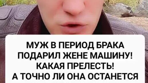 МУЖ ПОДАРИЛ В ПЕРИОД БРАКА ЖЕНЕ МАШИНУ! А ТОЧНО ЛИ ОНА ДОСТАНЕТСЯ ЖЕНЕ ПРИ РАЗВОДЕ???