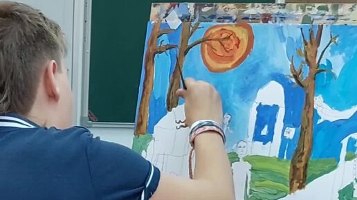 Миша рисует лето. Тема рисунка : "Как я провел лето" . Он решил рисовать дачу.
