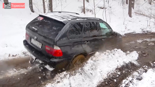 Парня на BMW X5 застал нервный срыв от такого бездорожья. Кроссовер явно не рассчитан на такой offroad.
