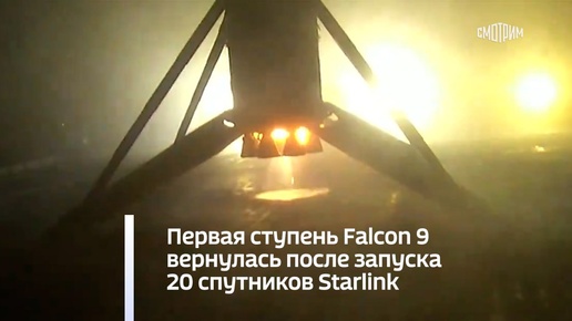 Первая ступень Falcon 9 вернулась после запуска 20 спутников Starlink