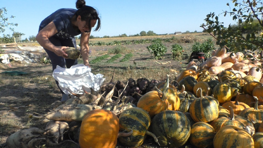 Двух курочек зарезали. Свеклу и тыквы везём домой от сестрички