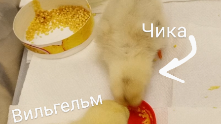 Цыплята кушают и свистят, пищат, щебечут одновременно.