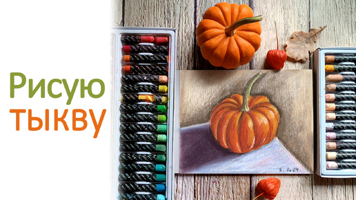 Рисую тыкву с натуры масляной пастелью.