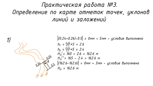 Практическая работа. Определение по карте отметок точек, уклонов линий и заложений.