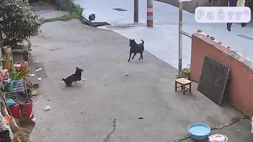 Кошка вмешалась в собачьи разборки