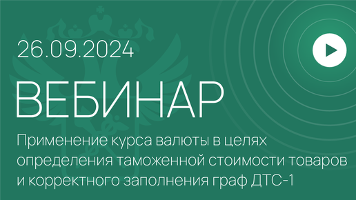 Вебинар ФТС России на тему «Применение курса валюты в целях определения таможенной стоимости товаров и корректного заполнения граф ДТС-1»