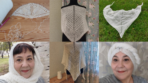 Простая треугольная косынка со средней линией,спицами из Итальянского бобиного мохера готова!26.09.24год Уфа.