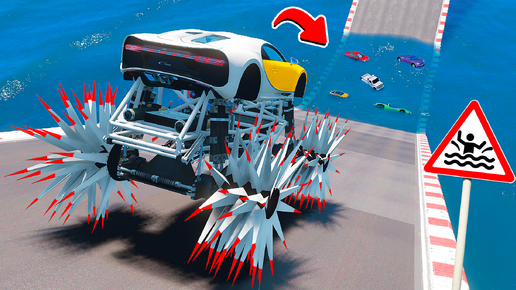 СМОЖЕТ ЛИ ГИГАНТСКАЯ БУГАТТИ ШИРОН НА КОЛЮЧКАХ ПРОЕХАТЬ БОЛЬШУЮ ЛУЖУ В ГТА 5 МОДЫ - ЭКСПЕРИМЕНТЫ В GTA 5 MODS