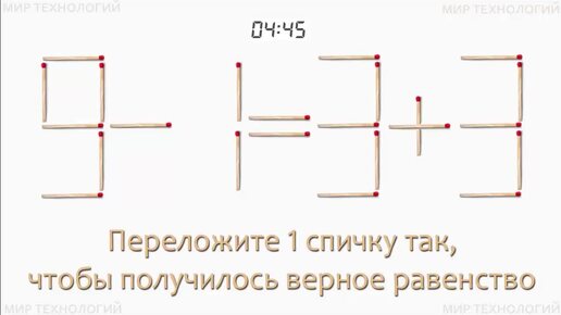 Задача 261. Переложите 1 спичку так, чтобы получилось верное равенство (9-1=3+3)