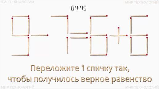 Задача 265. Переложите 1 спичку так, чтобы получилось верное равенство (9-7=6+6)