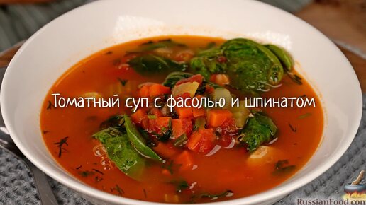 Яркий вид и яркий вкус. Томатный суп с фасолью и шпинатом