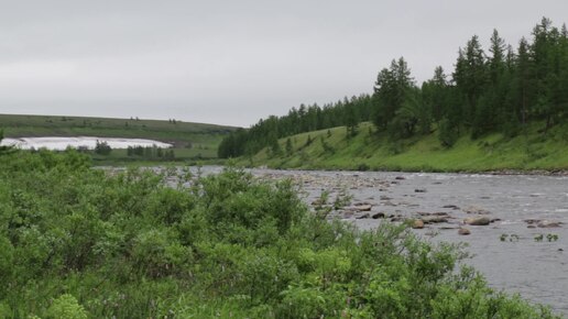 Бурные перекаты и обширные луга реки Лохорта (Лагорта). Бассейн реки Юньяха (Юньяга). Полярный Урал, Республика Коми.