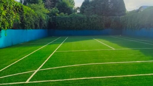 Теннисный корт из искусственного газона DiaSport Fibra 20. Чеховский район, деревня Масловка.