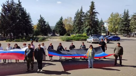 В Докучаевске развернули флаги России и ДНР