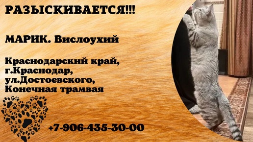 Пропал кот! МАРИК. Вислоухий. Краснодарский край, г.Краснодар