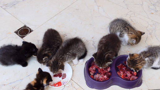Наблюдайте, как эти голодные котята сходят с ума по еде