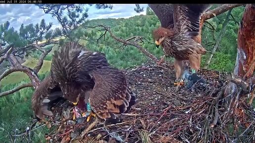 31.07.2024 Алтынычи. Сытый Инеш носит голубя по гнезду и тренирует хват