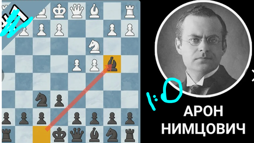 Партия - огонь с жертвой ферзя 27.♕xd7+ от Арона Нимцовича - Артуру Хакансону (Швеция, 1922, 1-0) во французской защите, гамбит Нимцовича