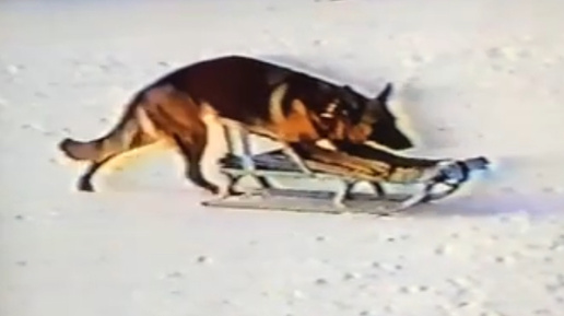 Собака катается на санках. Старое архивное видео моей подруги. Чудеса воспитания. Подробнее, в описании:).