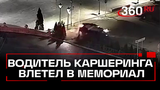 Водитель каршеринга влетел в мемориал в Дмитрове. Момент ДТП