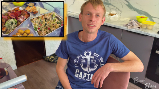 Следующий день после Дня Рождения мужа. Раскладываю еду. Семейный вечер