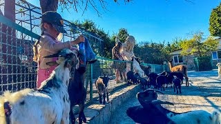 Козочки не отходят от Ангелины ни на шаг и ждут угощений!
