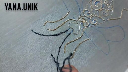 Мастер-класс Жук с синими крыльями. Часть 4. Вышивка усов жука. Прикрепный шов.