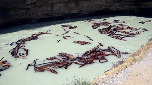 Каньон Аксу в окрестностях Кызылжалау, Туркестанская область, южный Казахстан. Водоворот с брёвнами, "миксер".