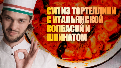 Суп из тортеллини с итальянской колбасой и шпинатом