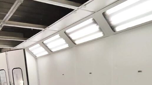 Как делают обслуживание окрасочной камеры. 2ч. Установка потолочных фильтров. Монтаж ламп бокового освещения.