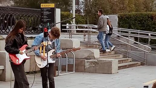 Молодые музыканты записывают своё выступление на улице. Екатеринбург. Плотинка.