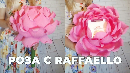 Как сделать большую розу из гофрированной бумаги с коробкой конфет Raffaello