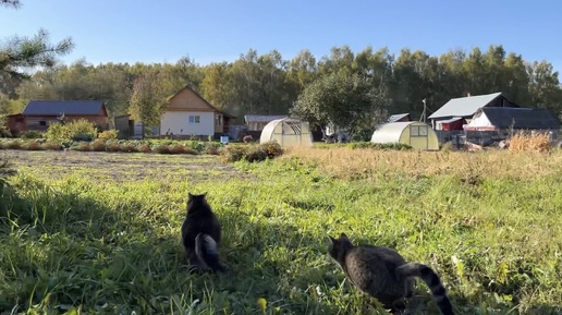 Как мы с котами сходили на прогулку в лес😁 Красивые пробежки по участку