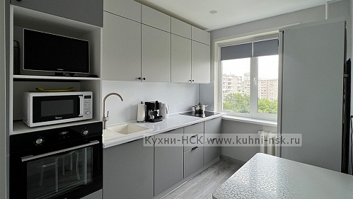 Элегантная кухня 7 м²: Стильный бело-серый гарнитур на заказ!
