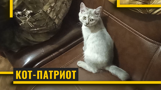 Фронтовой кот играет рядом с русским воином на СВО