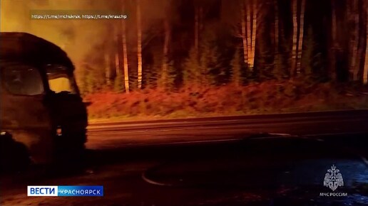 Сегодня ночью на трассе Козулька — Ачинск полностью сгорел грузовик