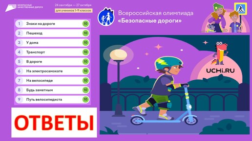 Ответы 90 из 90. Всероссийская олимпиада «Безопасные дороги» на УЧИ РУ в 2024 г. #олимпиада #безопасные #дороги #ПДД