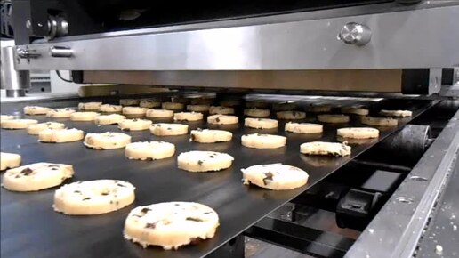 Промышленная отсадка печенья с включениями на под/ленту туннельной печи Padovani